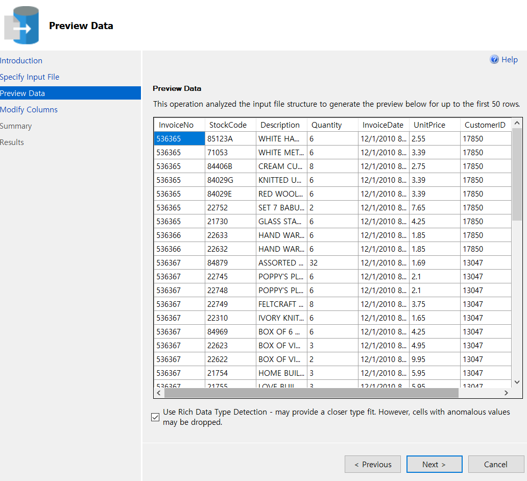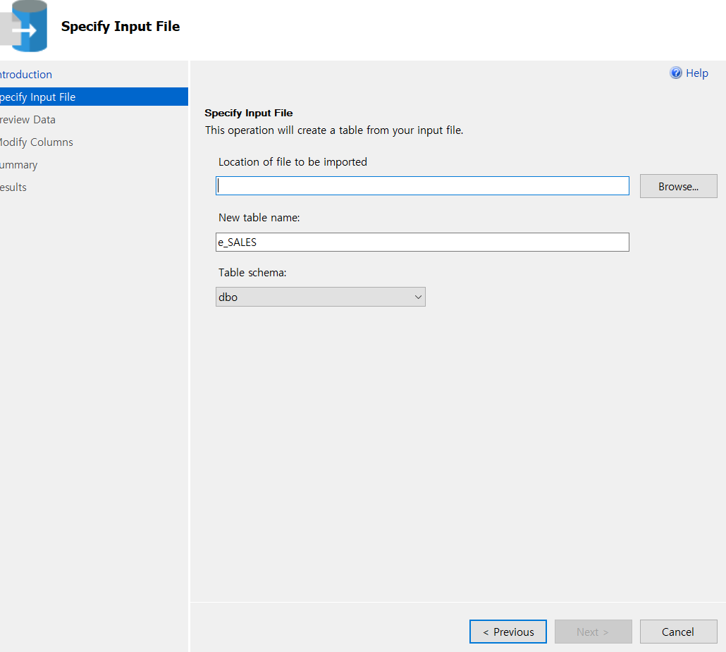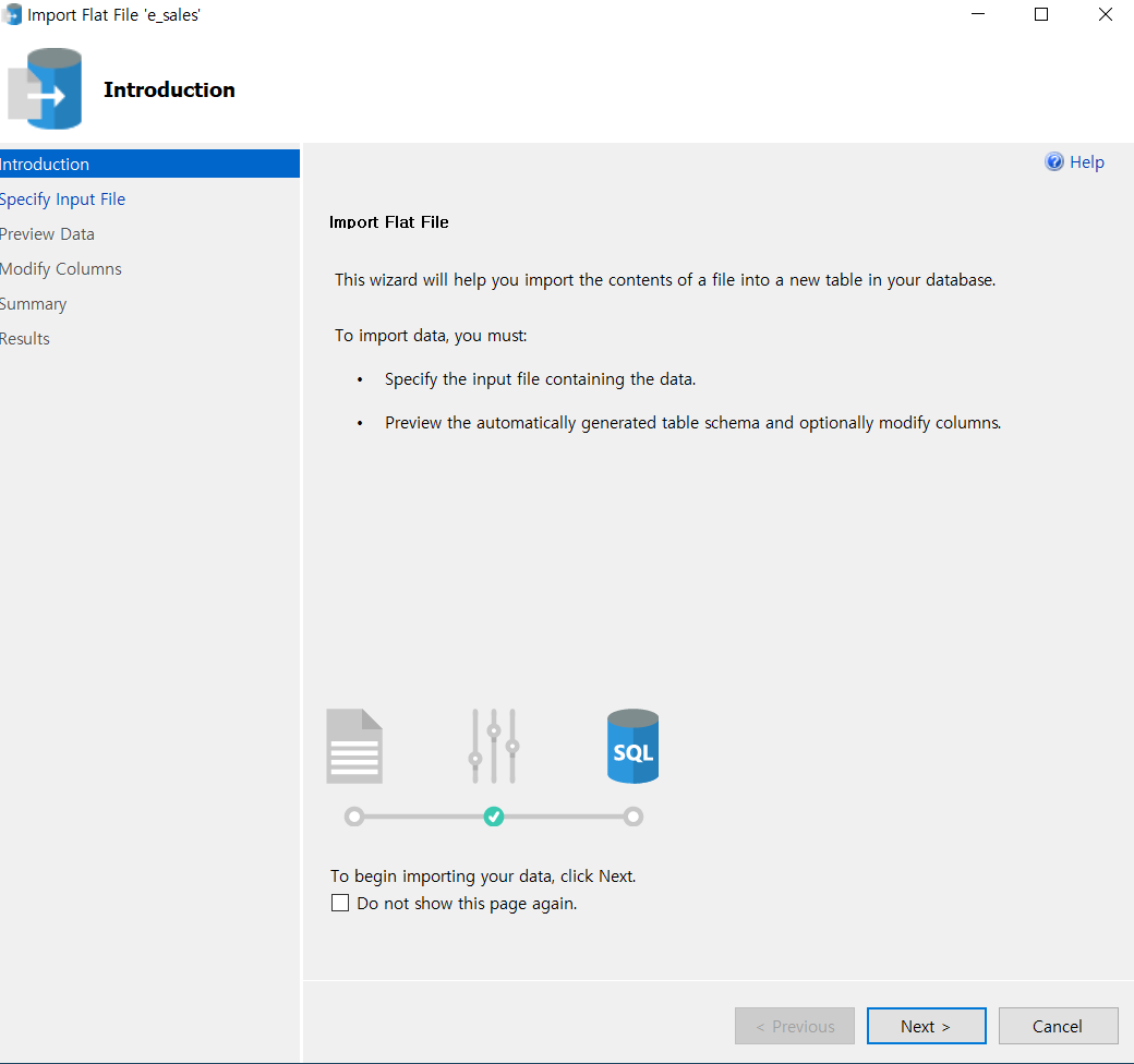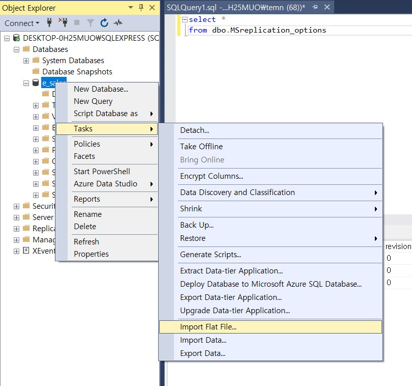 오른쪽 버튼 - Tasks - Import Flat Files 클릭