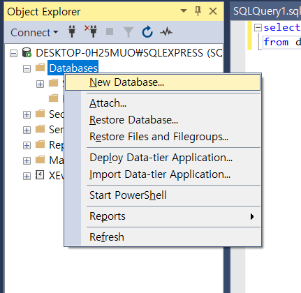 상대적으로 가벼운 SQL Server Express를 설치함.