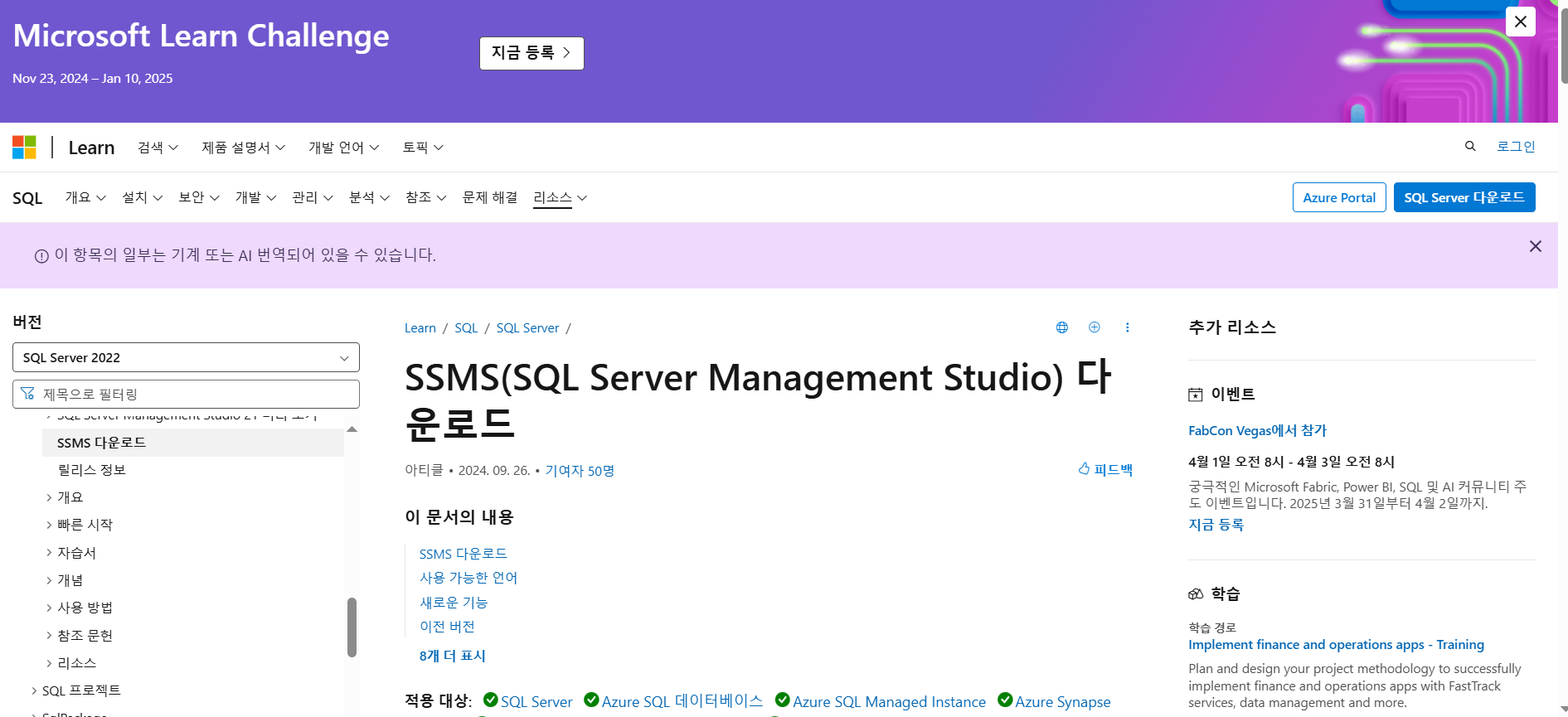 SSMS(SQL Server Management Studio)도 설치 해줌.