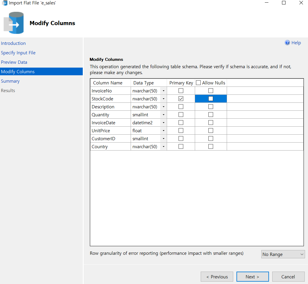 여기서 각 컬럼의 데이터타입을 잘 입력해주고